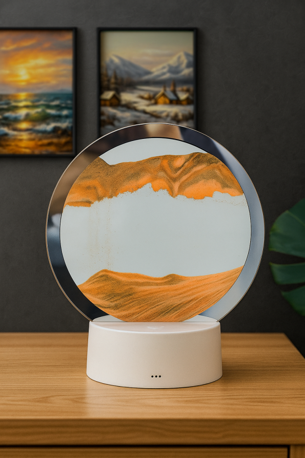 2 . Transformative Experience: Indulge in the mesmerizing beauty of the Moving Sand Art Table Lamp. The falling sand motion creates stunning visuals that let you escape into peacefulity. Every turn is a work of art, with fine sand forming unique structures that truly captivate.