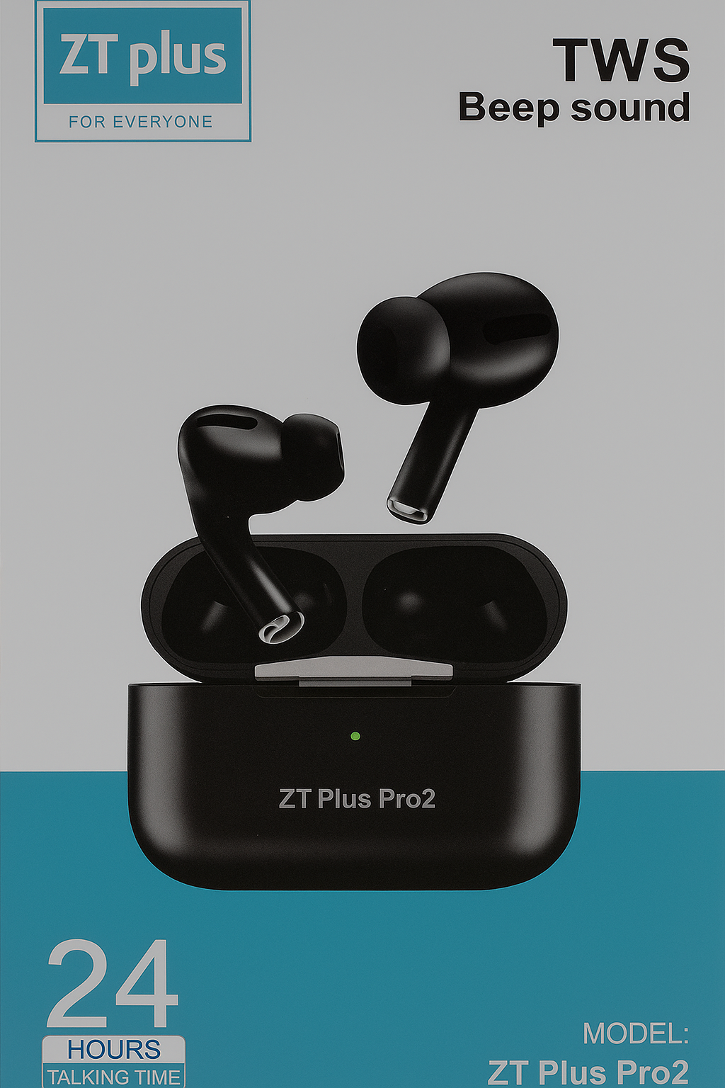 ZT Plus Pro AirPods have a long-lasting battery that provides up to 8 hours of talk time and up to 15-16 hours of continuous listening.
