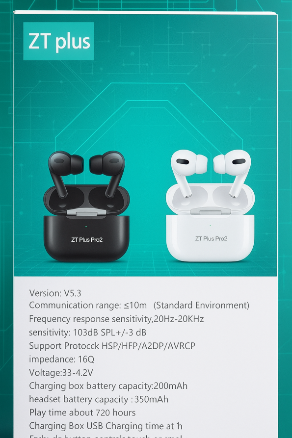 ZT Plus AirPods pro comes with new features and a new design. AirPods pro focuses on the front voice in the speaking environment and magnifies the listening power from the start. There are several features to help with hearing needs.